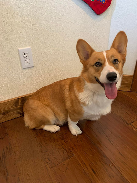 Beth is a red/white AKC Pembroke Welsh Corgi. She is health tested via Gensol (clear for DM / EIC and is a carrier not affected for VWD1). Beth is our family pet that we adore.