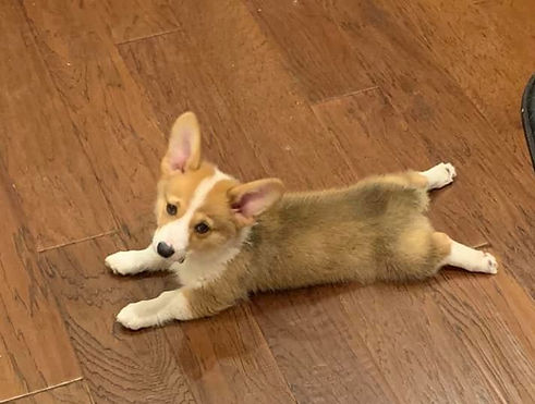 Maxine is just a puppy. She is a red/white AKC Pembroke Welsh Corgi.